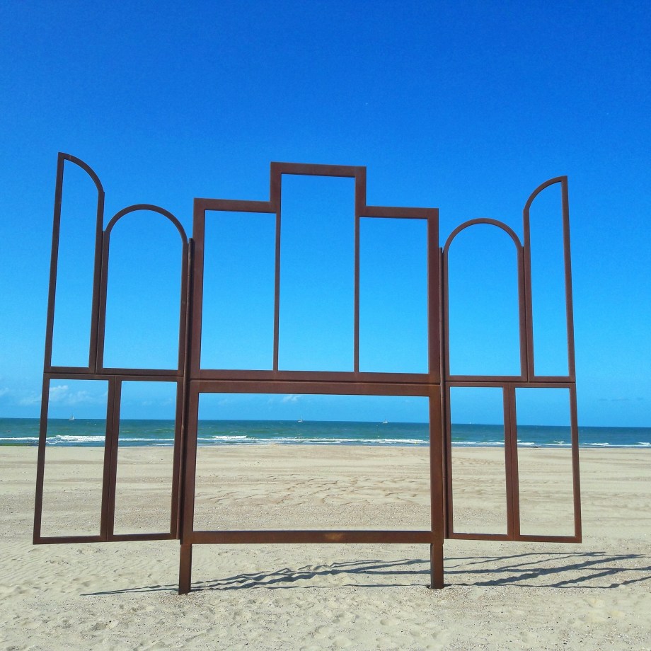 Foto rechts boven: Altar van Kris Martin, op het strand van Oostende, België